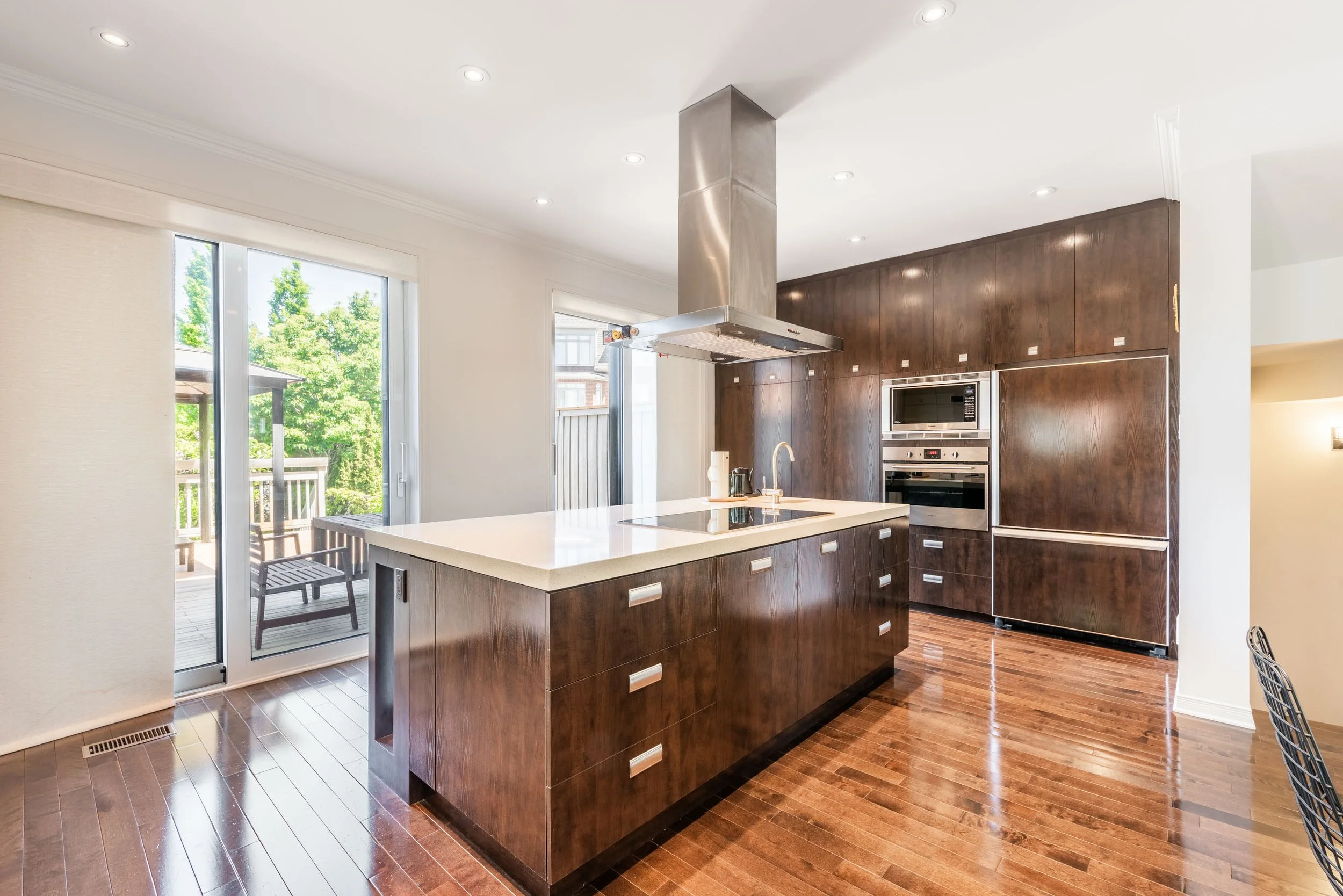 Gorgeous corner unit townhouse in the highly sought-after Bois-Franc neighbourhood. This modern, sun-filled home features wood floors throughout, an open-concept living area with large patio windows, and a gourmet kitchen with ample cabinetry and storage. The spacious master bedroom includes an en-suite bathroom. The mezzanine offers a family room with a fireplace, two bedrooms, and a full bathroom. A private patio terrace and backyard are perfect for entertaining.